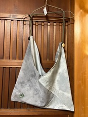 ザクロとミックスベリーを鉄媒染とアルミ媒染で染め上げ。4種類の色柄をクラスした肩掛けバック。A4ノートが余裕ではいるサイズ。 シックなグレーのグラデーション。