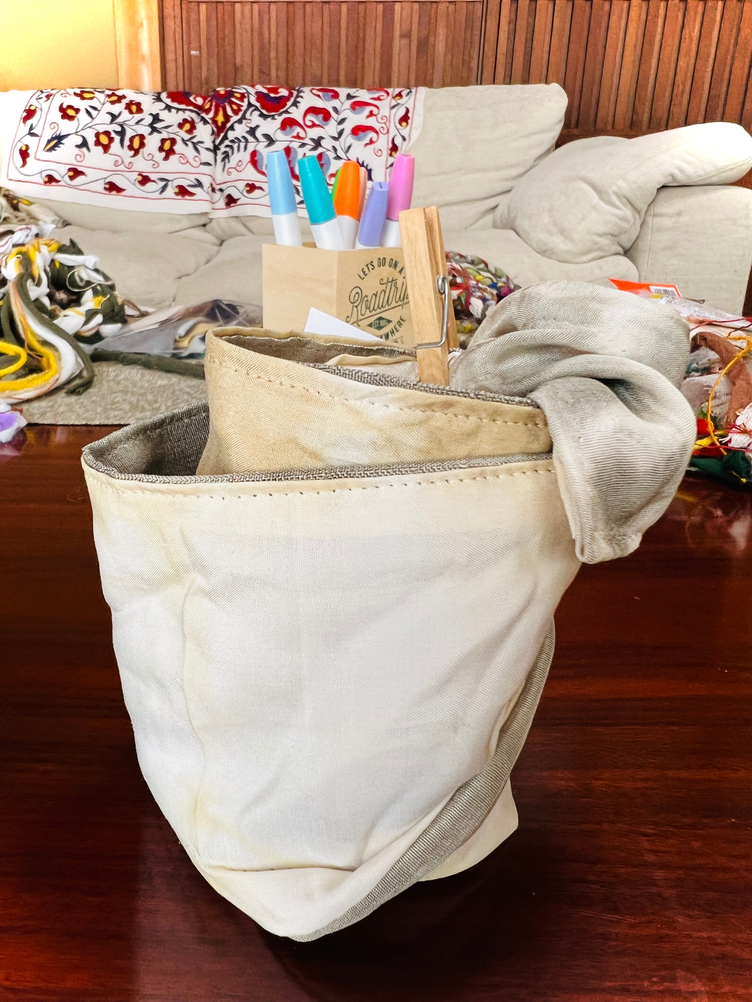 シルク生地のフキとウコン染めのリバーシブルターバンです。